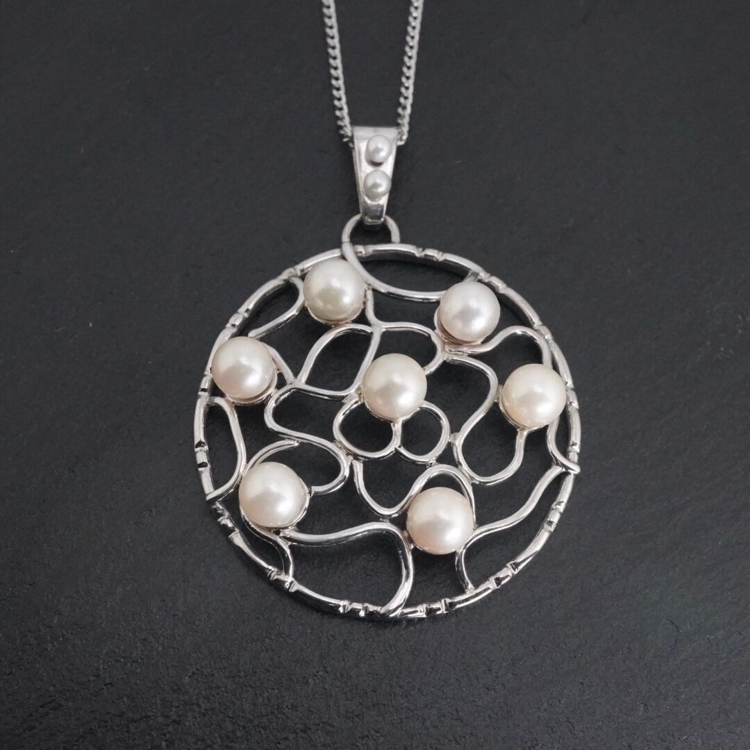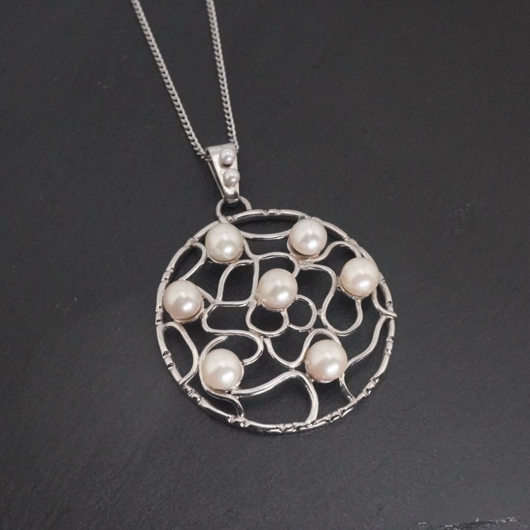パール フラワーモチーフ シルバーネックレス