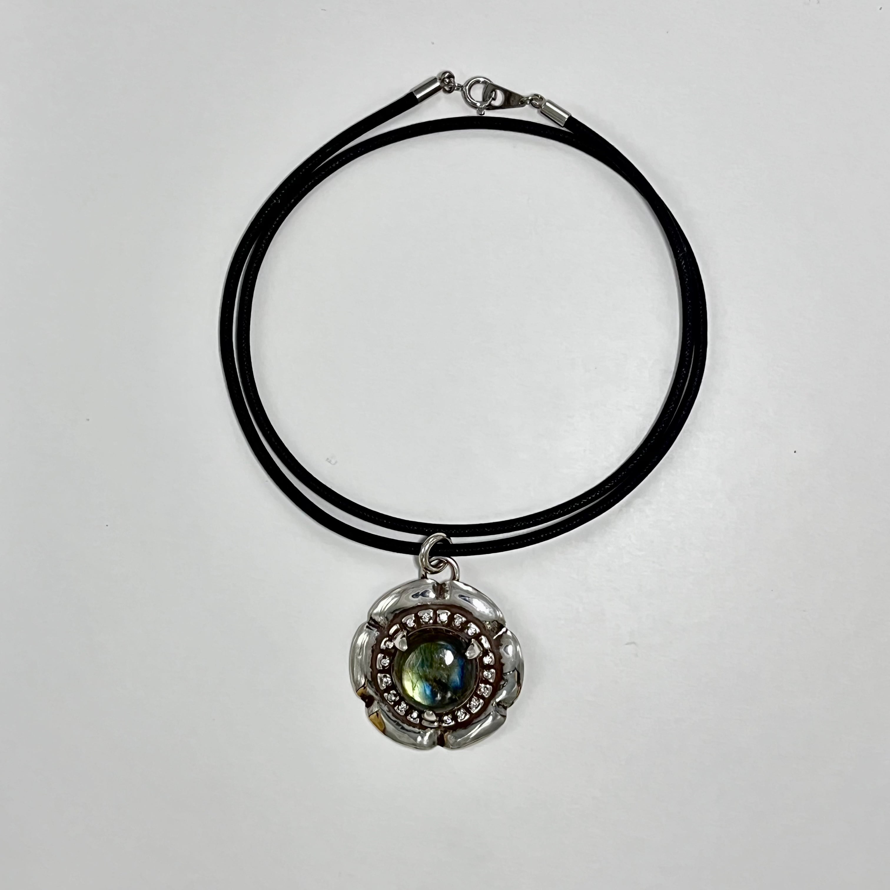 □素材:シルバー925古美加工 ラブラドライト ジルコニア ロウ引き紐