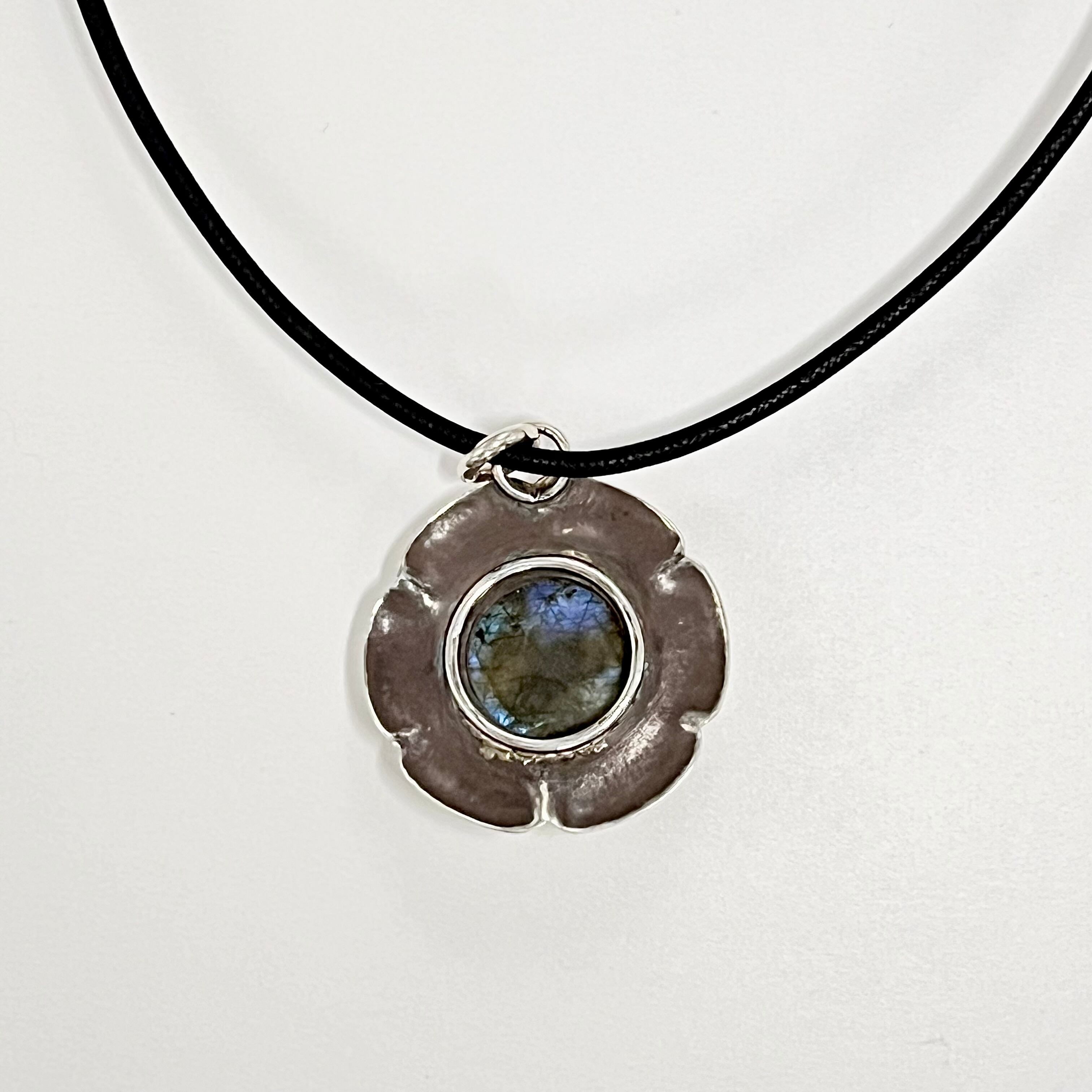 ラブラドライト 古美加工のフラワーネックレス