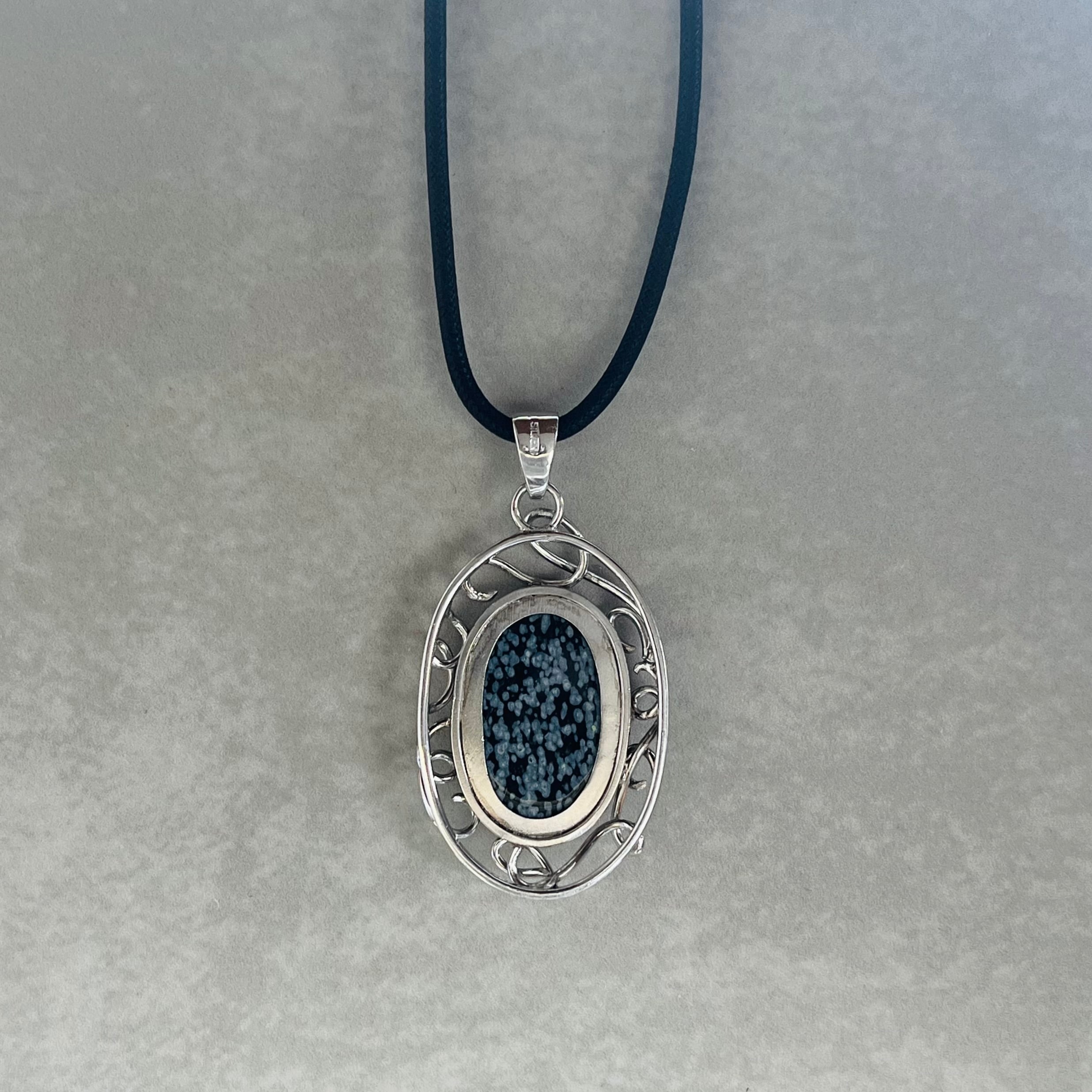 □素材:シルバー925 スノーフレークオブシディアン ロウ引き紐