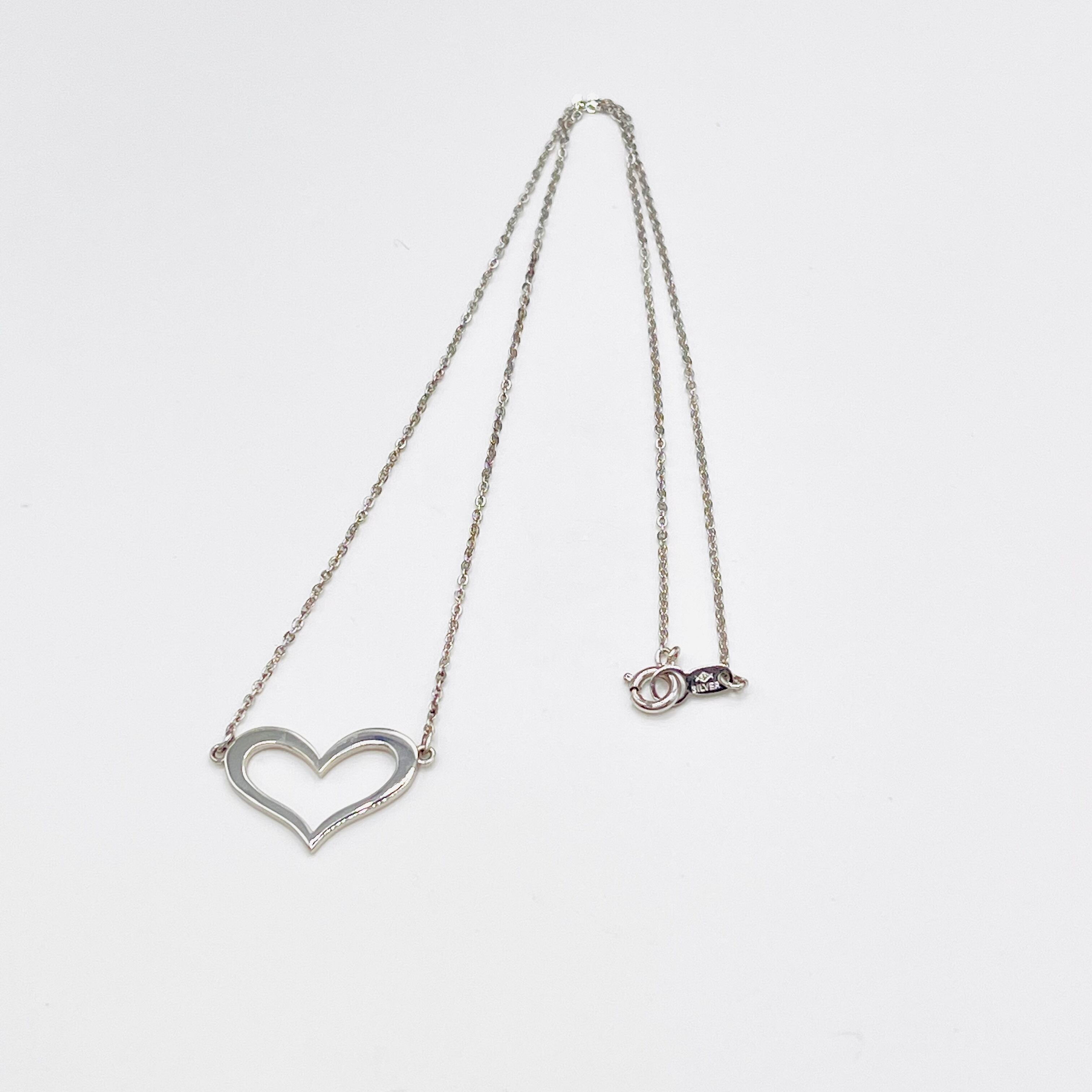 魅力的なハートのシルバーネックレスが登場しました!シルバーのツヤ感が美しく、視線を引きつけるデザインです。どんなファッションスタイルにもマッチし、華やかさをプラスしてくれます。シンプルながらも存在感抜群のアクセサリーで、特別な日にも普段使いにもおすすめです。