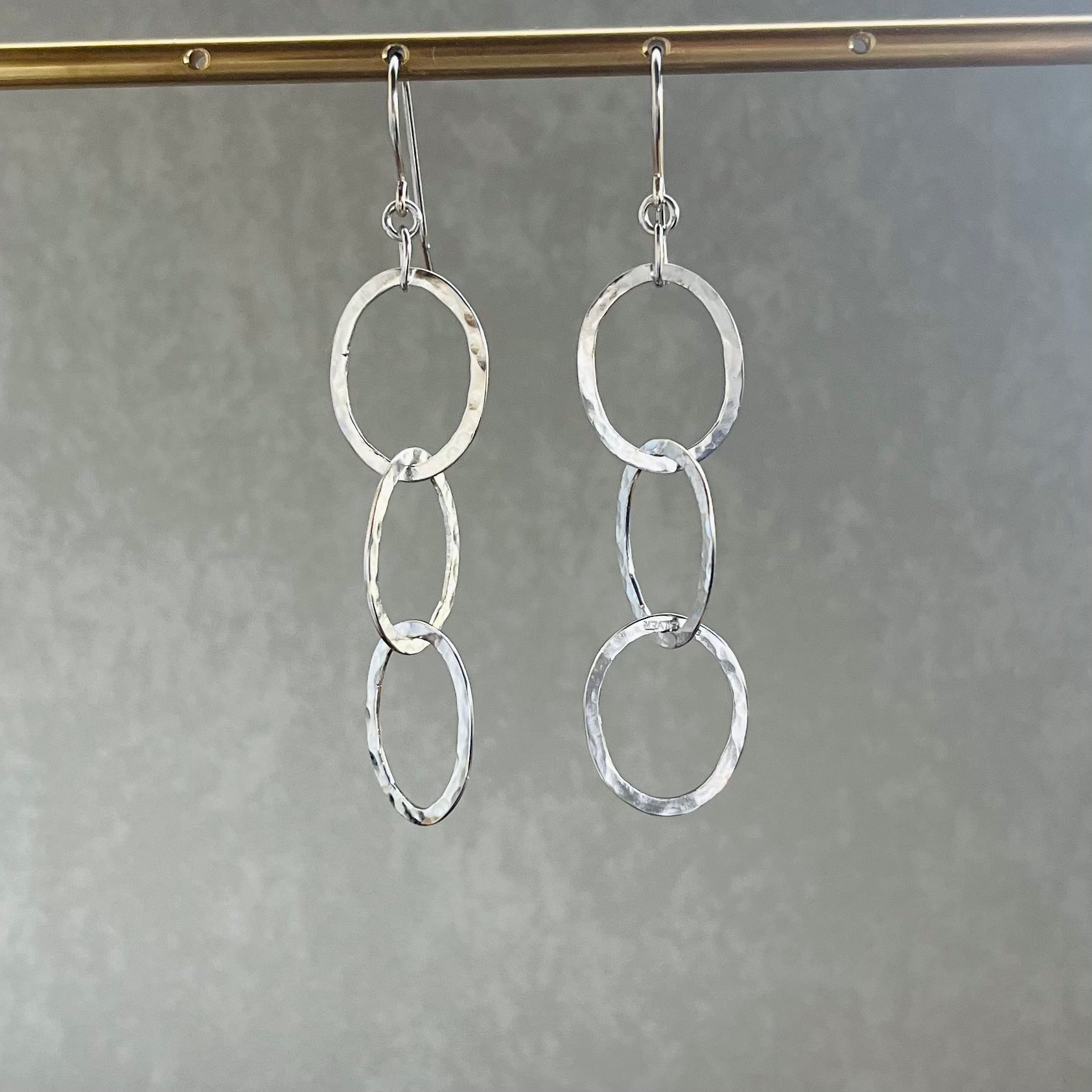 3連リングのシルバーピアス