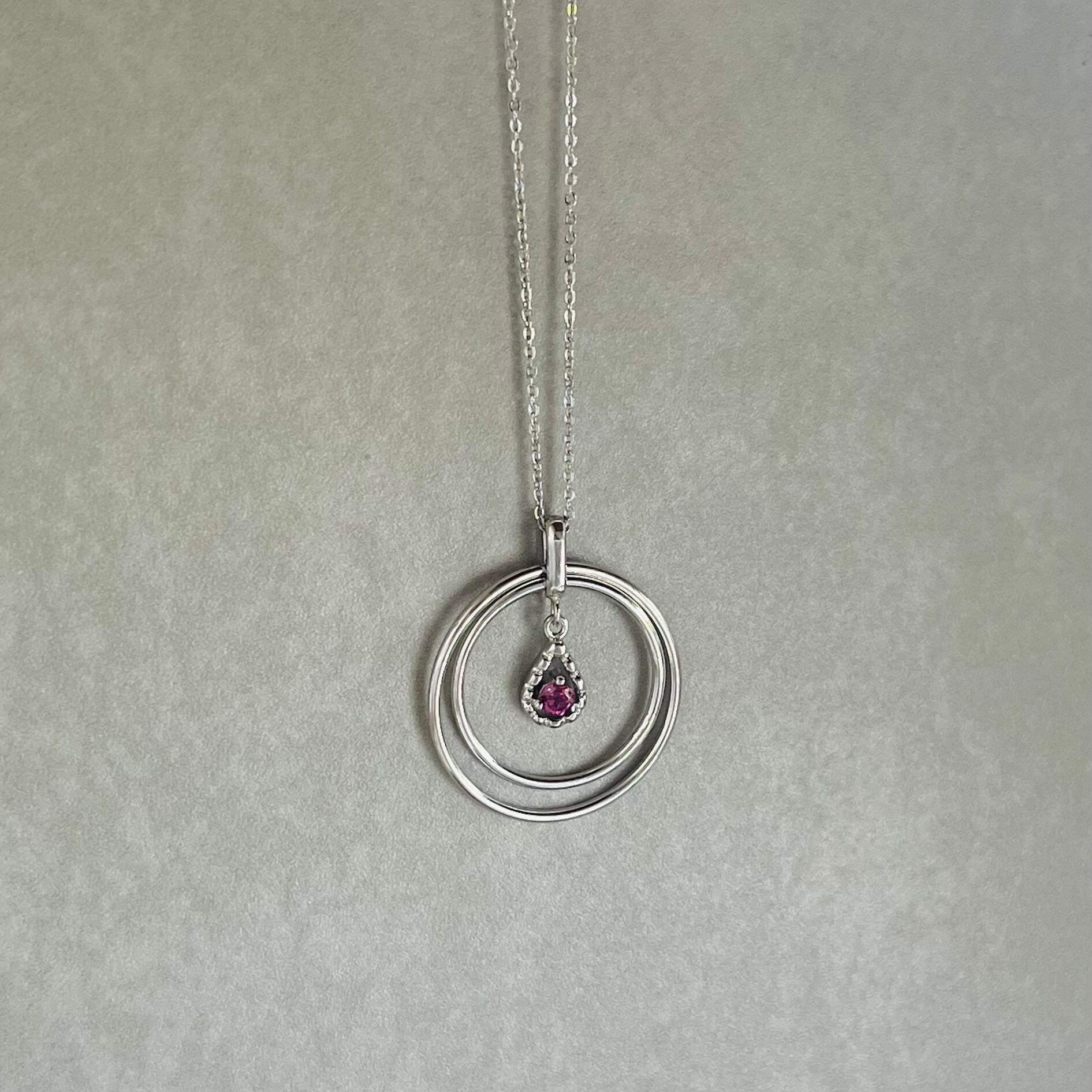 ロードライトガーネットのリングネックレスは、美しい輝きが魅力のアクセサリーです。揺れる石とリングのツヤ感が絶妙にマッチし、首元を華やかに彩ります。ロードライトガーネットは、愛や情熱を象徴する石として知られており、身に着けるだけでパワフルな魅力を引き出します。