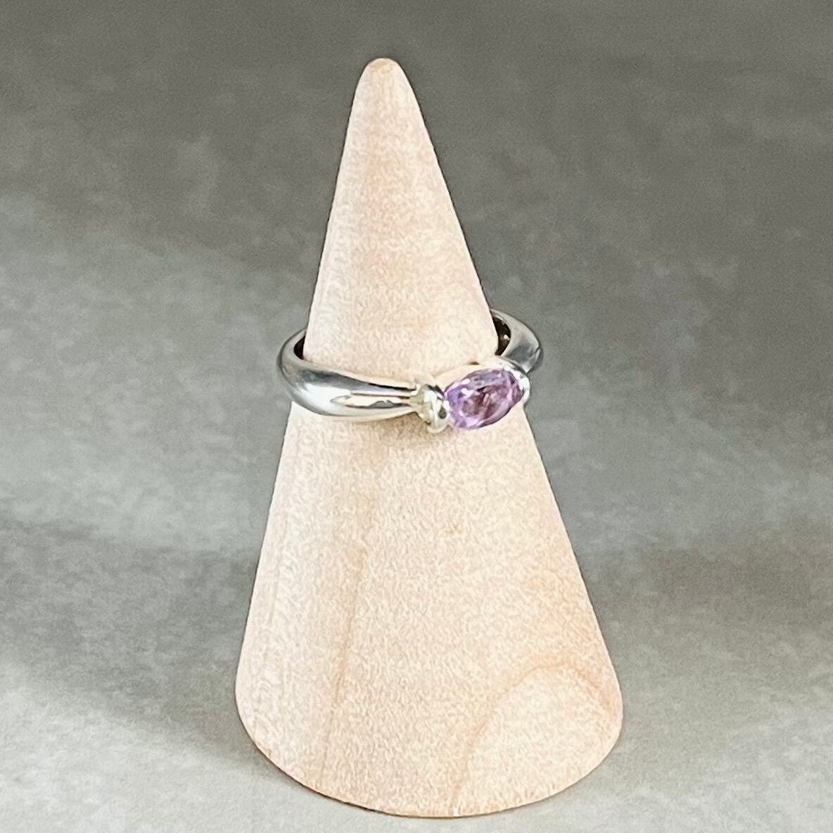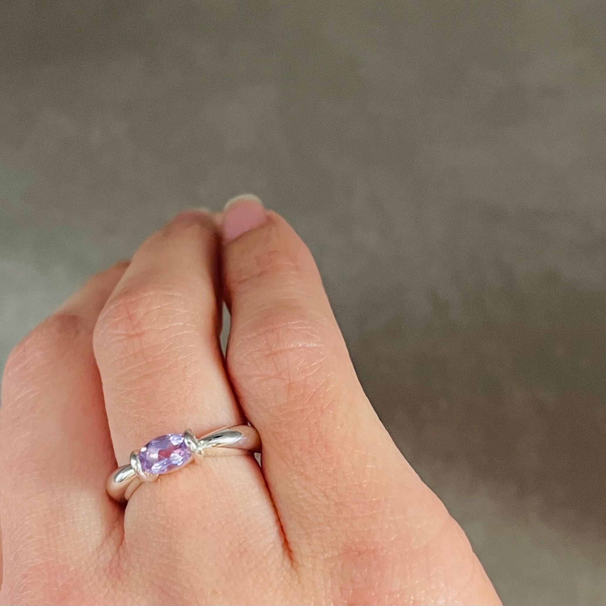 指先を彩るアメジストの輝きに、あなたも心躍ること間違いありません。是非、特別な日の演出や日常使いに、このシンプルリングをお楽しみください。