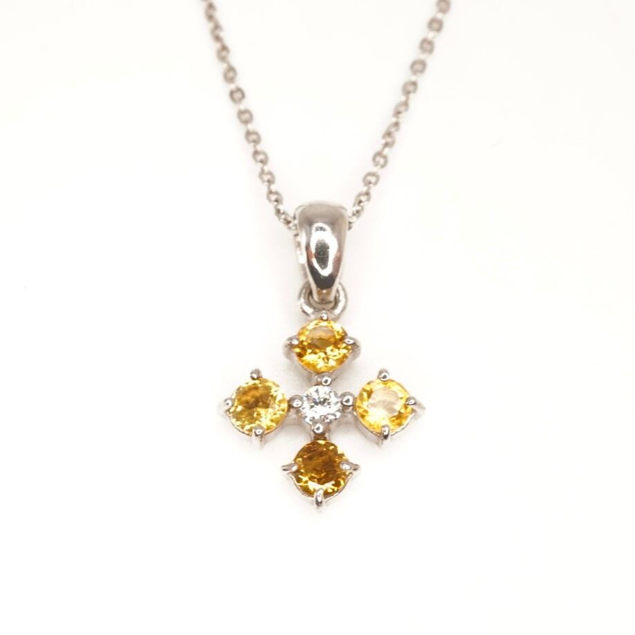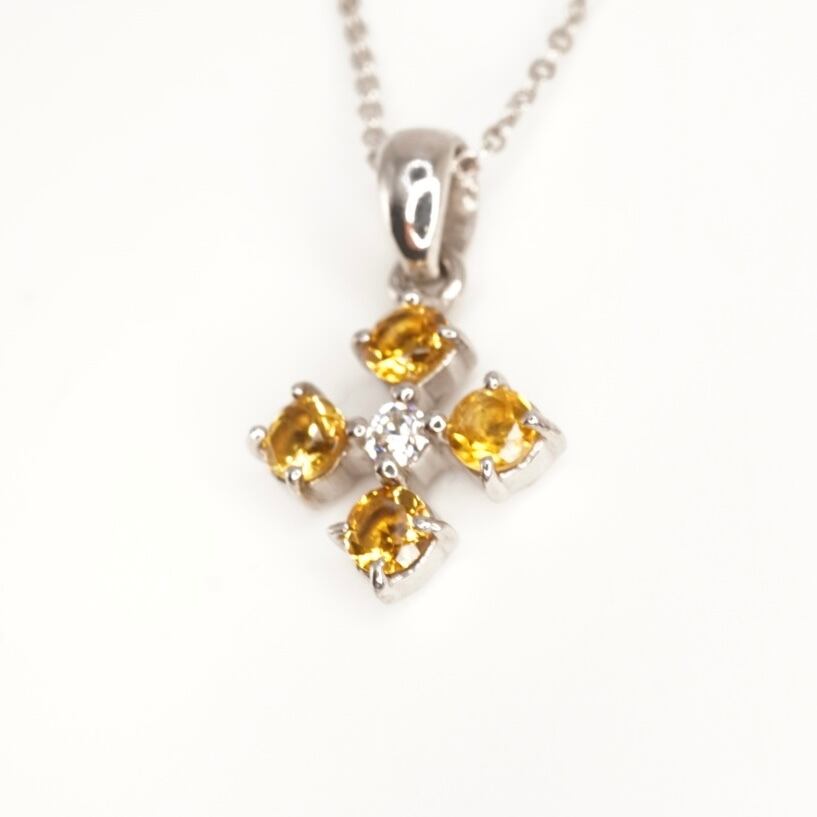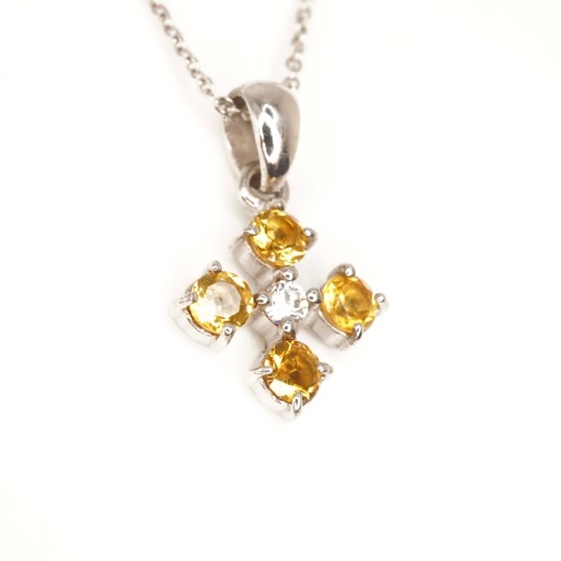シトリントパーズとジルコニアのシルバーネックレス