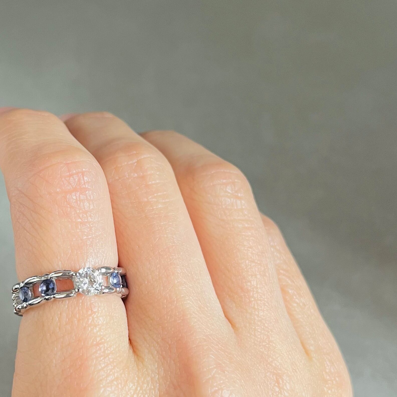 アイオライトとジルコニアの輝きが美しいシルバーリングです。上品な輝きを放つアイオライトと、ダイヤモンドにも匹敵する輝きを持つジルコニアが、指先を華やかに彩ります。シルバー素材の繊細なデザインが女性らしさを引き立て、どんなコーディネートにも馴染みます。日常使いはもちろん、パーティーシーンでも活躍すること間違いなし!品質にもこだわり、長くご利用いただける仕様になっております。お手元に華やかさを添える、特別なアクセサリーとしてオススメです。