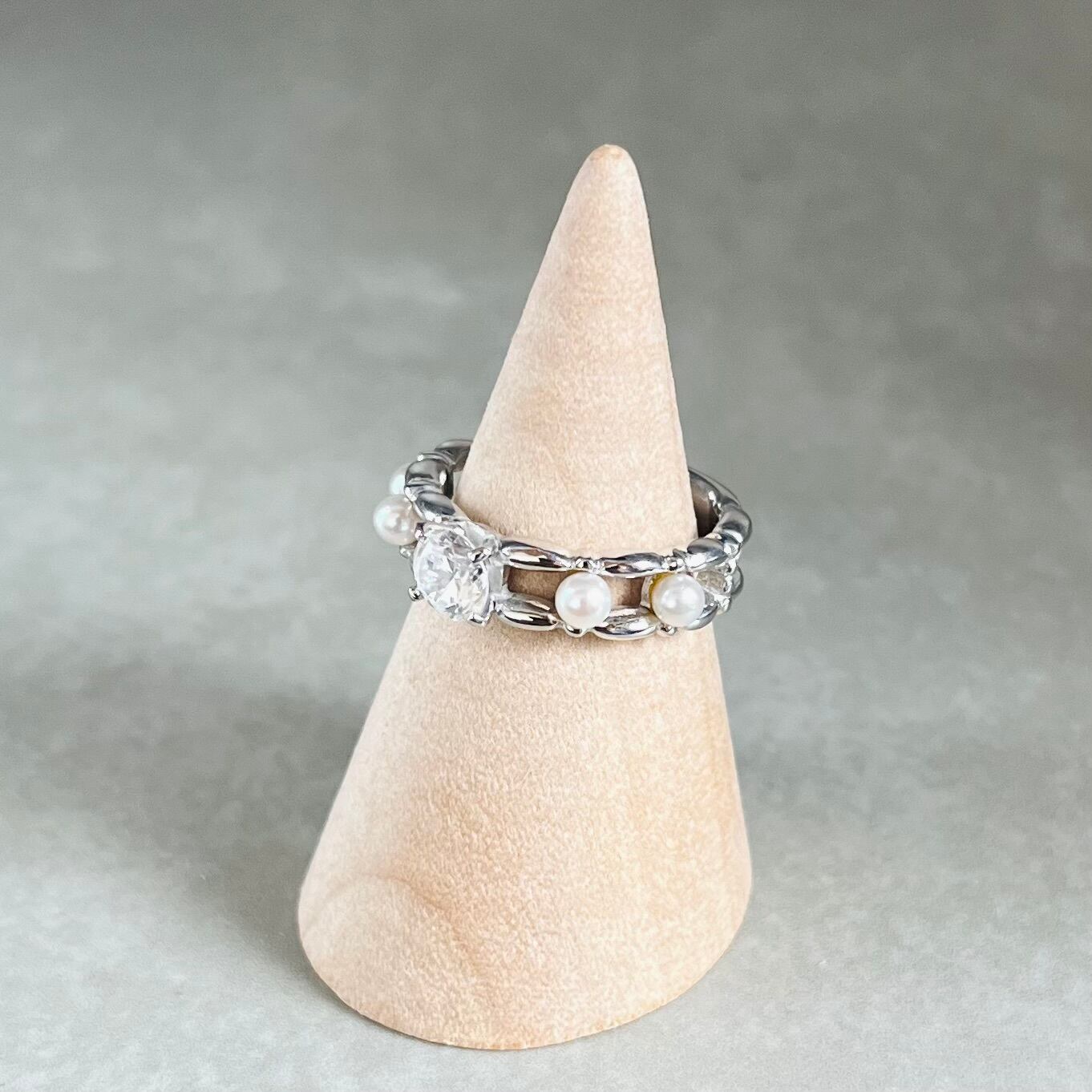アコヤパールとジルコニアのシルバーリング 13号