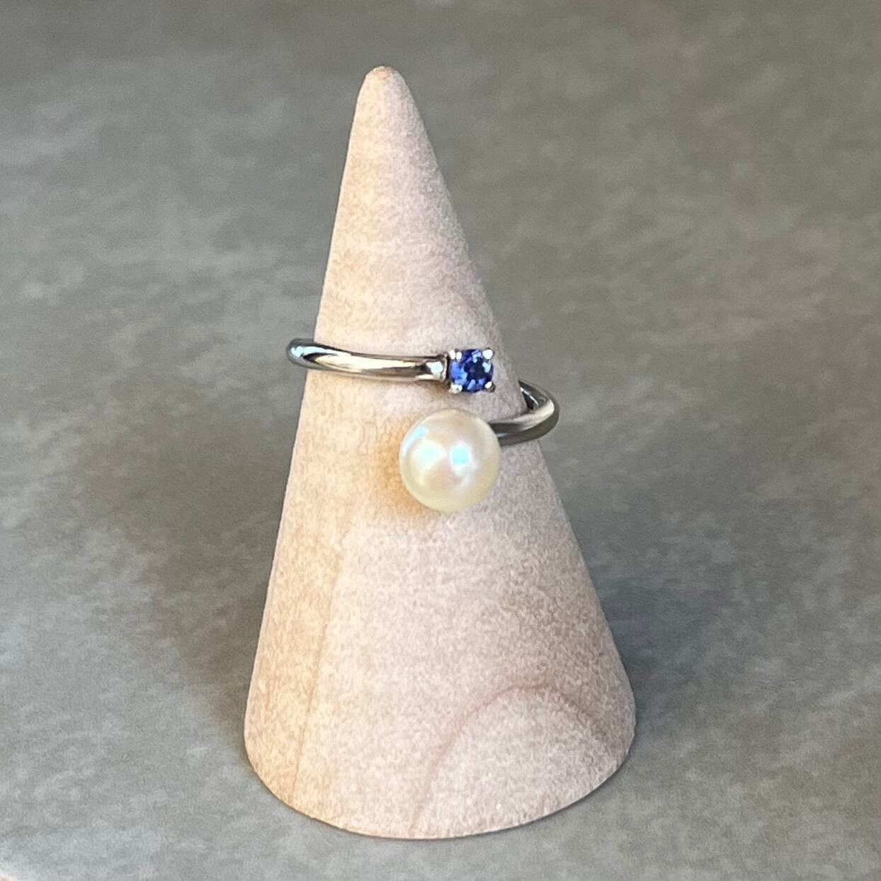 アコヤパールとアイオライトが美しく輝くシルバーリング。上品で華やかなデザインが、あなたの指先をエレガントに彩ります。アコヤパールのツヤ感とアイオライトのきらめきが相まって、まるで星空が指先に広がるような魅力を放ちます。