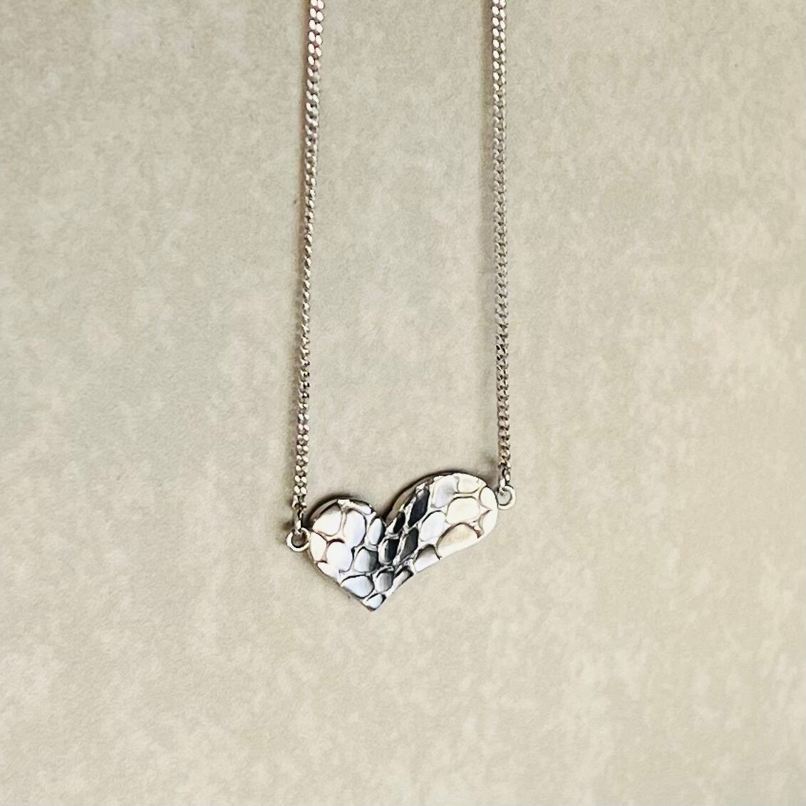スネーク柄ハートのシルバーネックレス