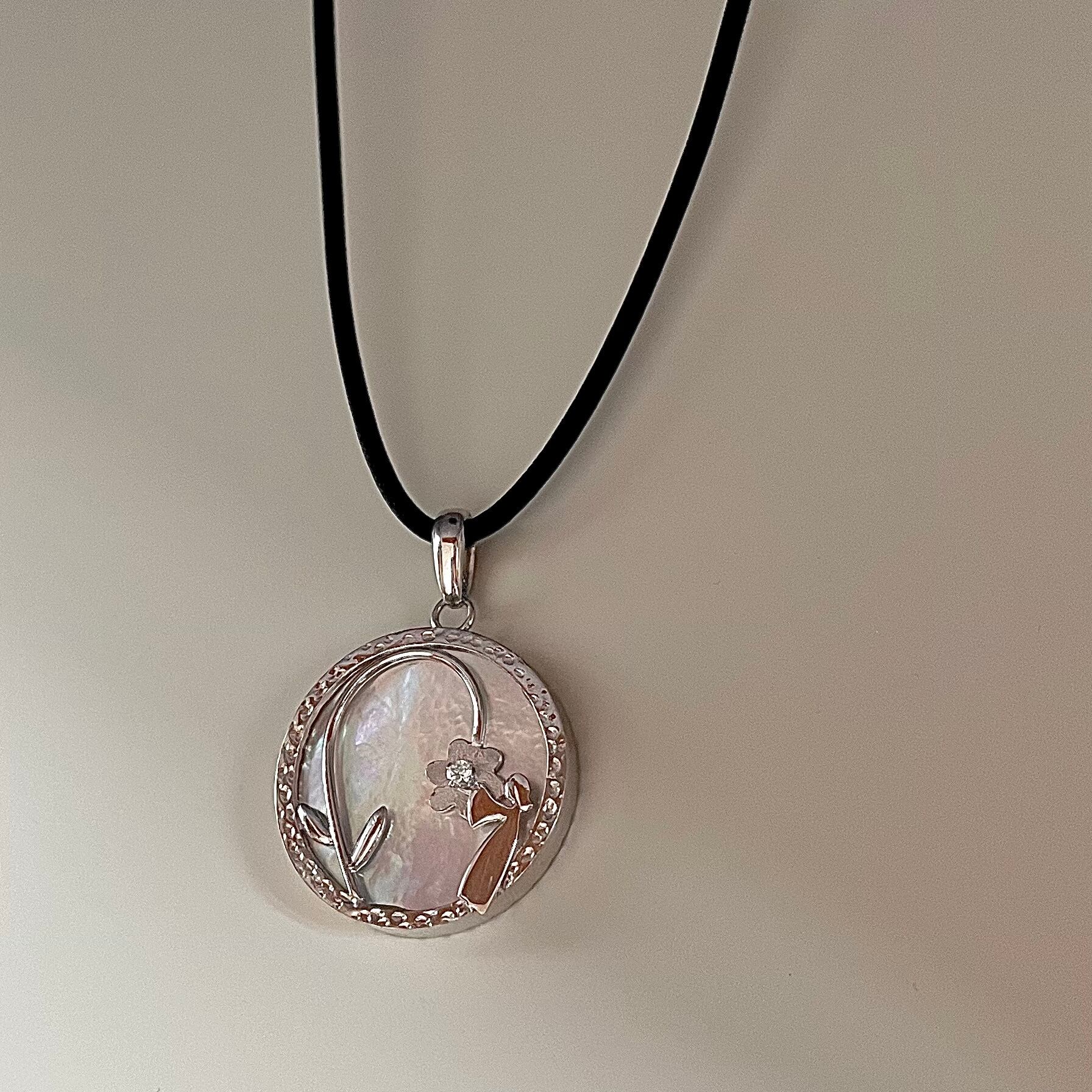 □素材:シルバー925 あこや貝 ジルコニア ロウ引き紐