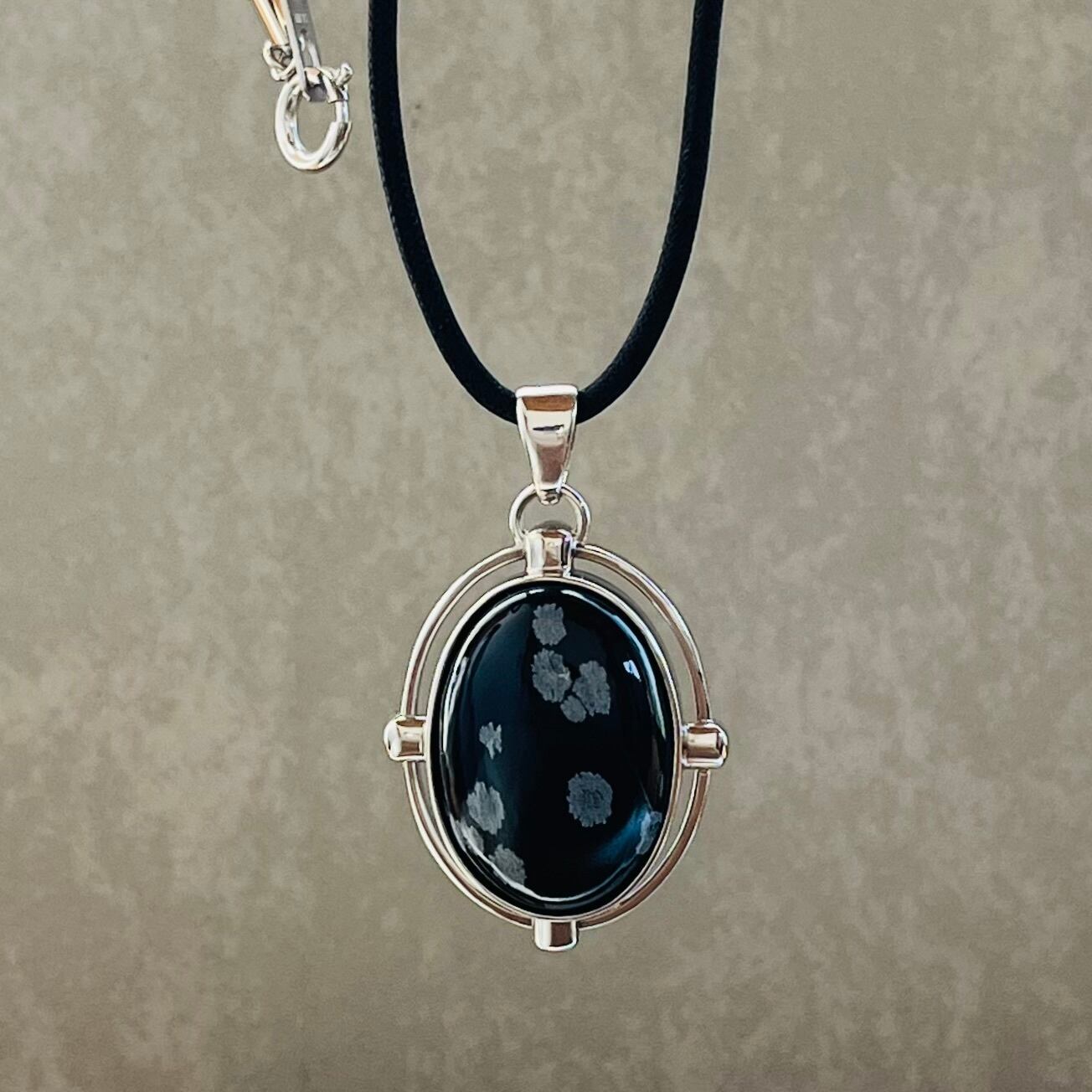 □素材:シルバー925 スノーフレークオブシディアン ロウ引き紐