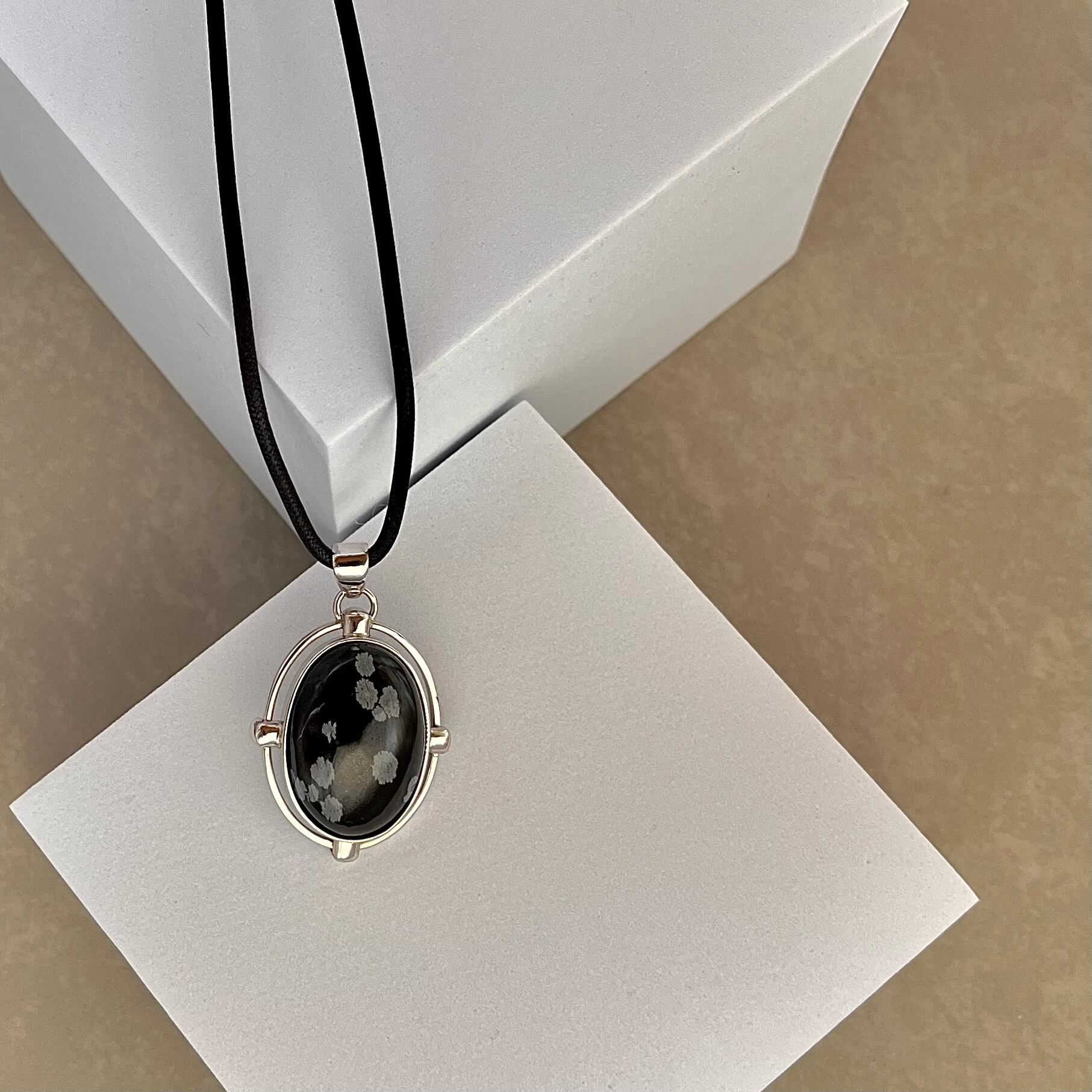 スノーフレークオブシディアンの ペンダントネックレス