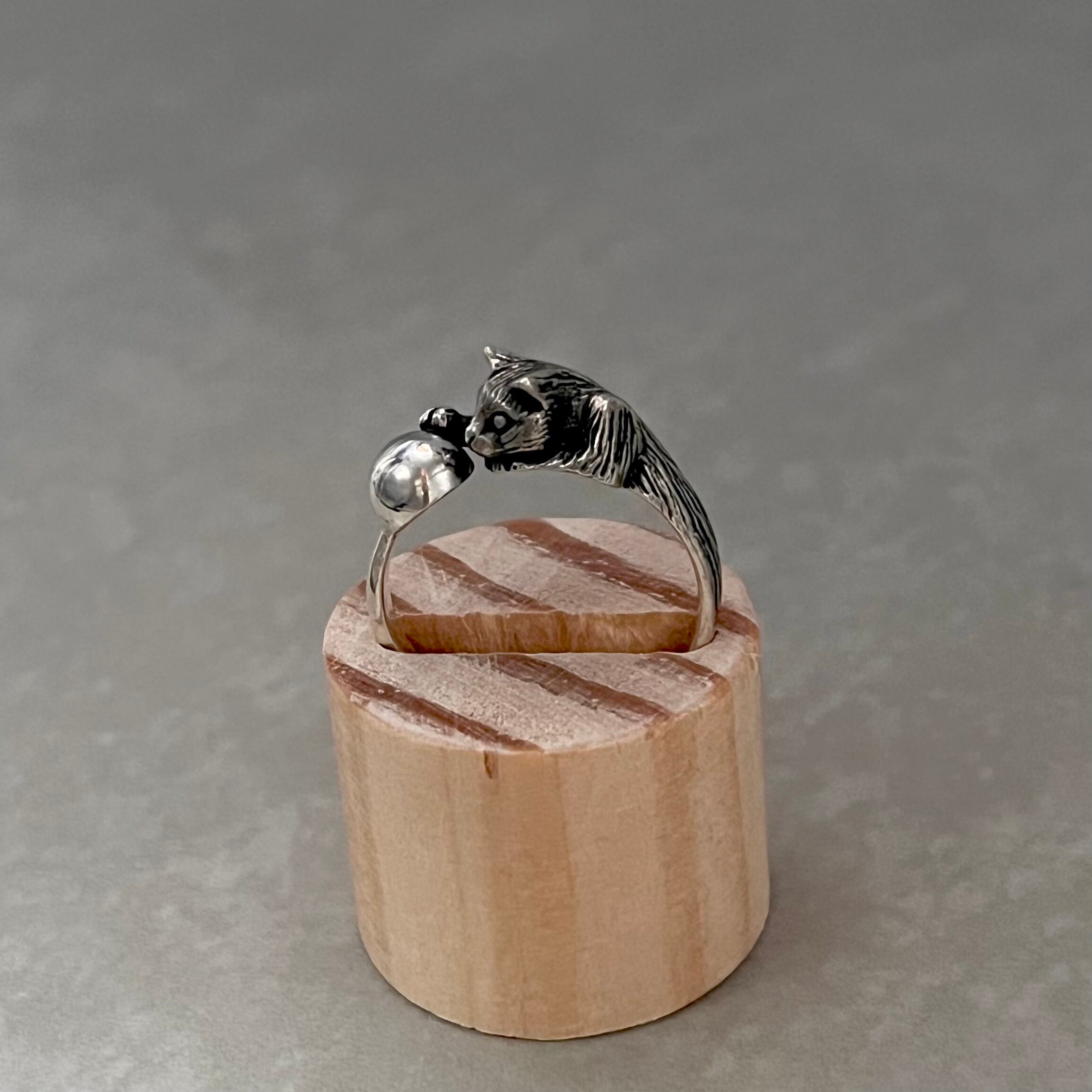 ディープな魅力漂う「じゃれ猫シルバーリング」。気まぐれな黒猫が、可愛らしくあなたの指先で遊びます。シンプルでありながら存在感のあるデザインは、どんなコーディネートにもマッチし、おしゃれ度を引き立てます。丁寧に作られたリアルな彫刻は、猫好きの心をくすぐること間違いなし。お気に入りのアクセサリーとして、普段使いから特別な日まで幅広くお楽しみいただけます。