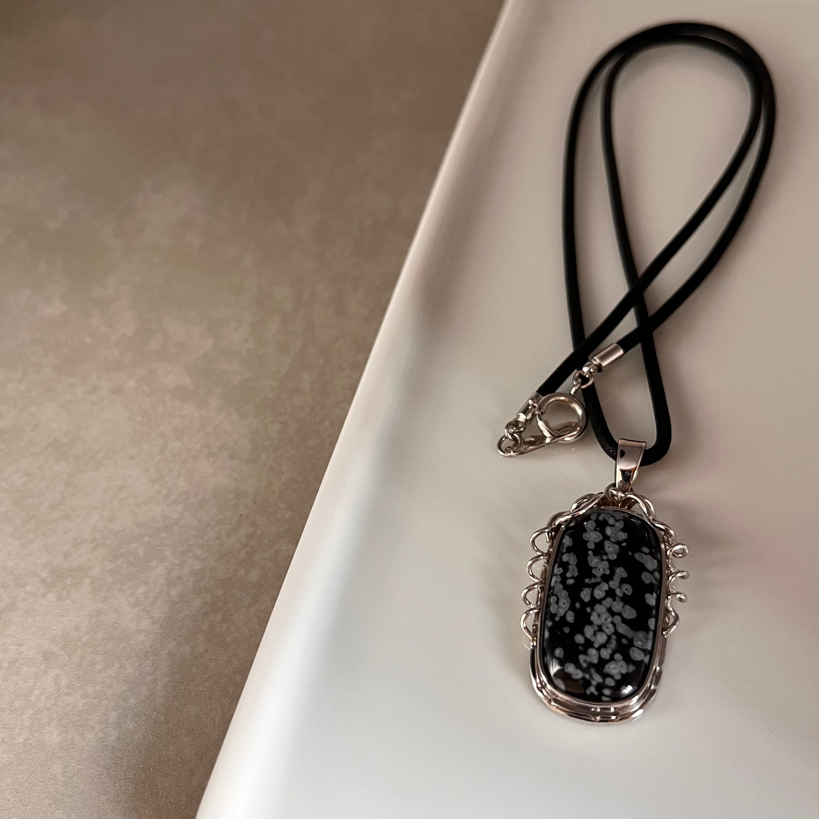 スノーフレークオブシディアンのペンダントネックレス