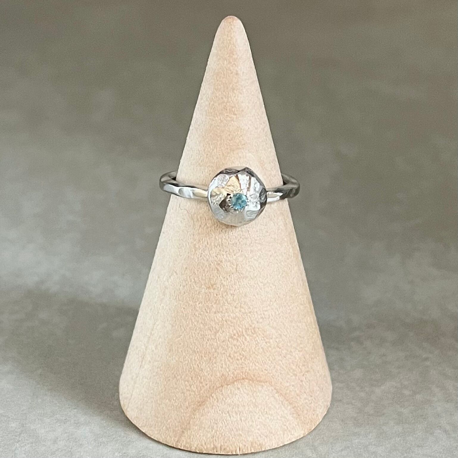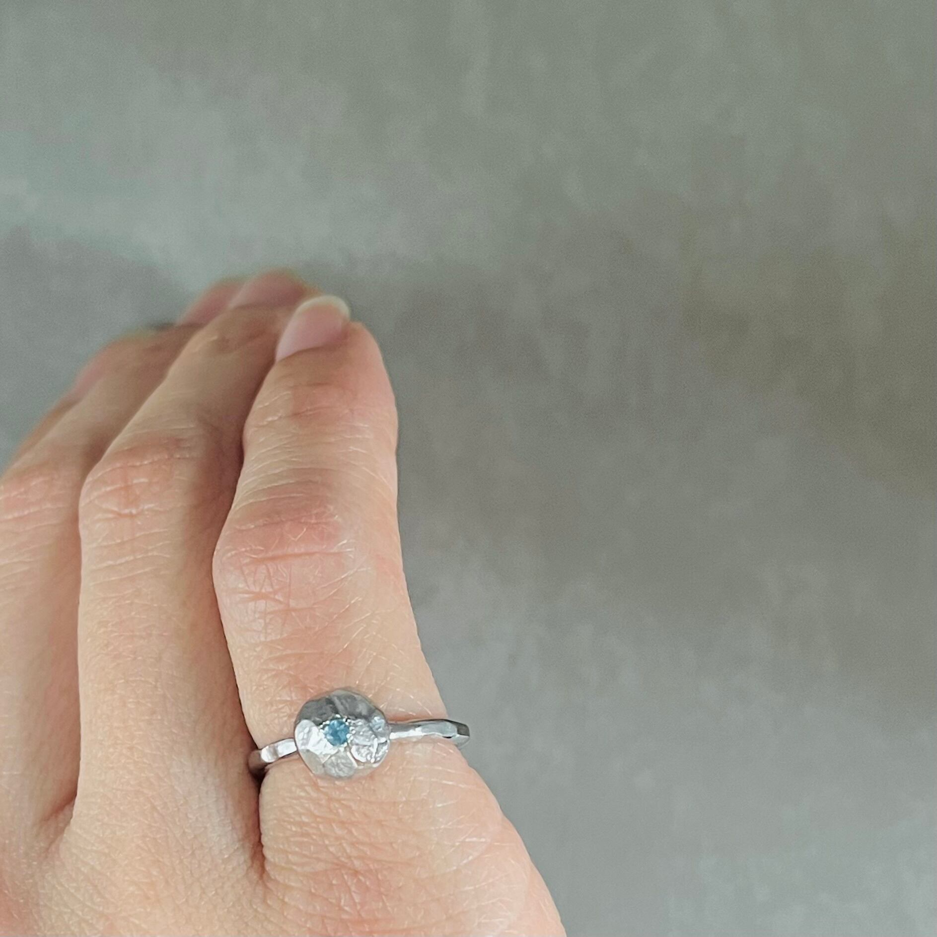 シルバーストーンに輝くブルートパーズが美しい、華奢なストーンリング。一石の輝きが指元を上品に飾ります。デイリーコーディネートにもぴったりな可愛らしいデザインで、どんなシーンにもマッチします。