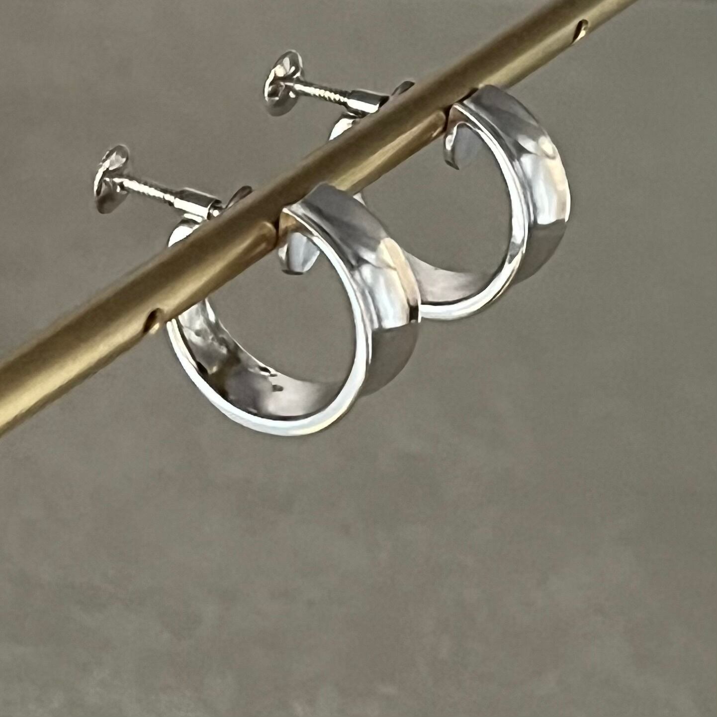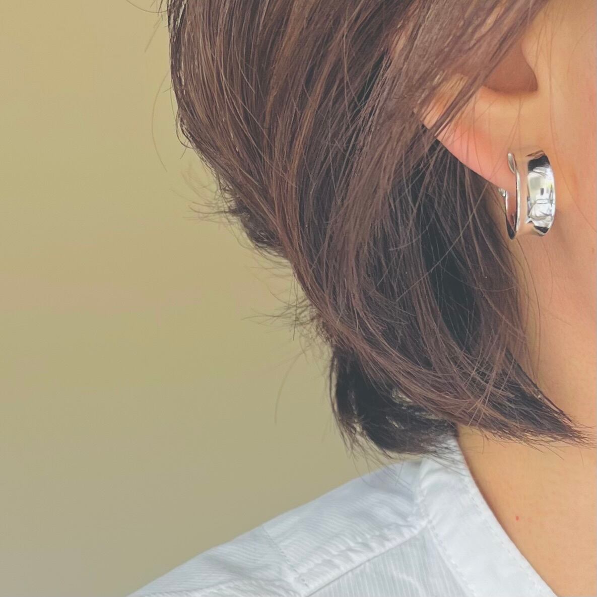 シルバー地金のツヤ感が美しいサークルイヤリング。しっかりした厚みがあり、高級感が漂うアイテムです。シンプルなデザインながらも存在感があり、どんなコーディネートにも馴染みます。耳元を華やかに飾りたい方におすすめです。