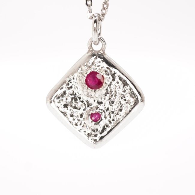 このルビーの四角い純銀ネックレスは、贈り物としても喜ばれること間違いなし。特別な誰かに、もしくは自分へのご褒美として、ぜひお手に取っていただきたい逸品です。