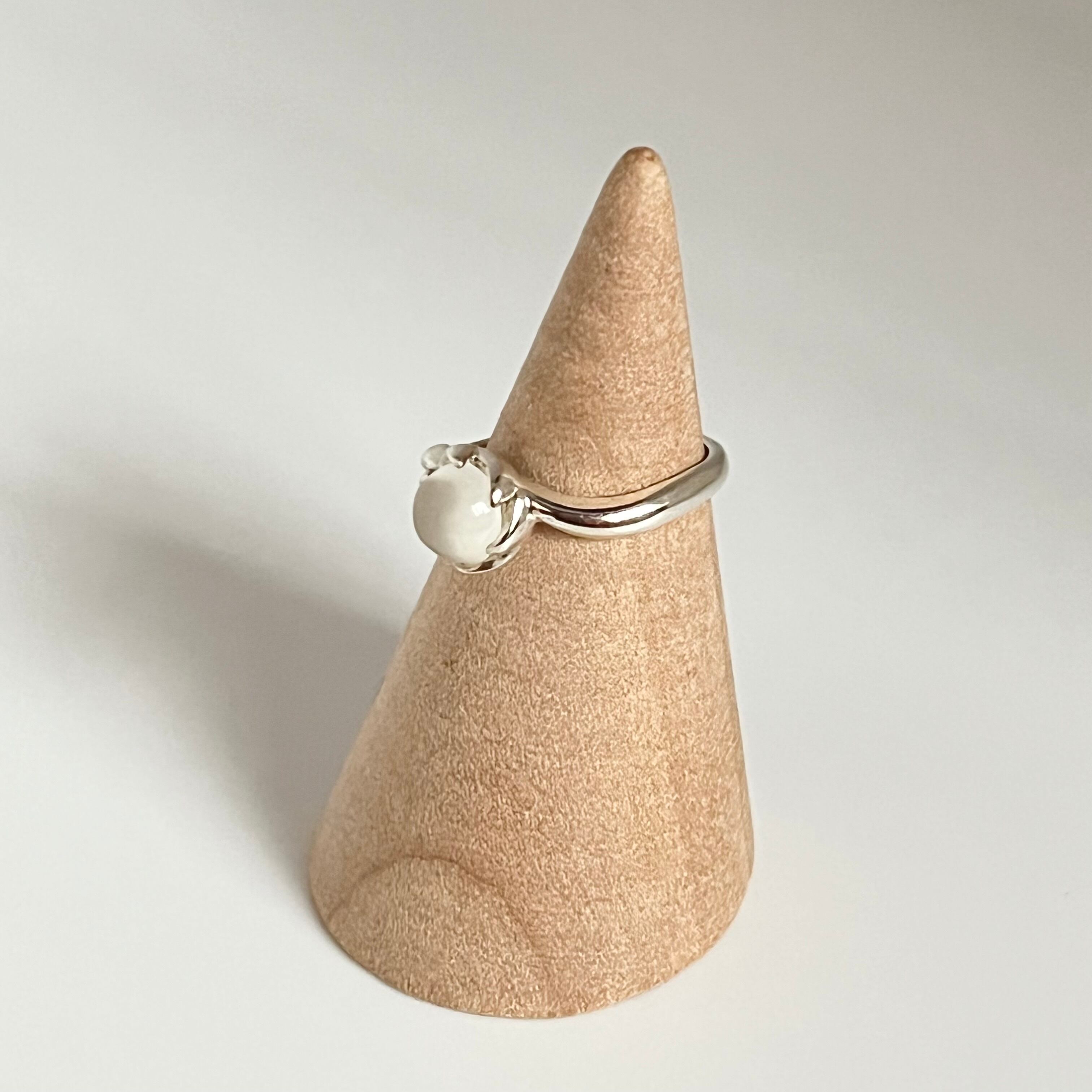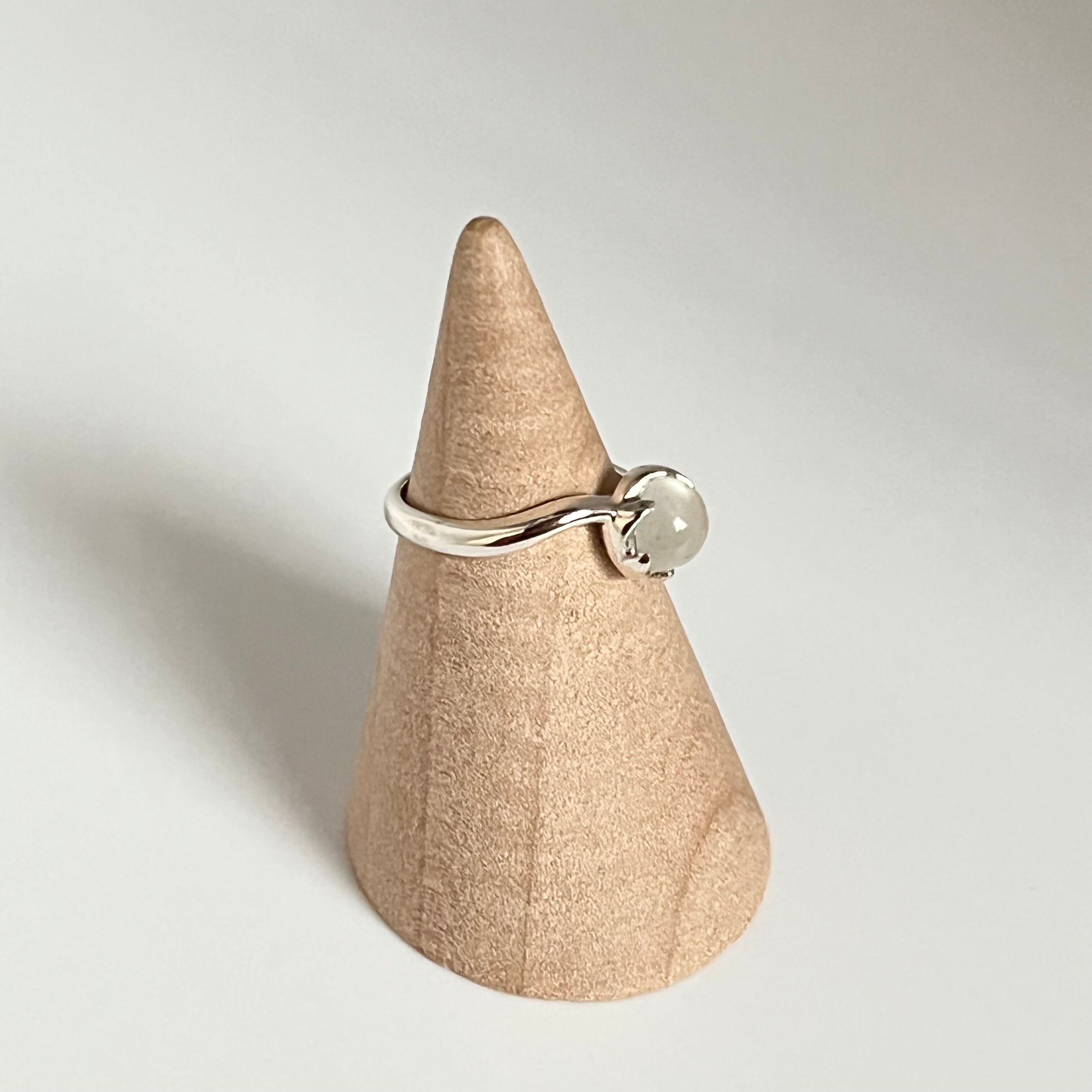 ストーンの美しさは、自然が生み出す不思議な輝き。月の光を思わせる美しいミルキーな色合いが、あなたの手元を優しく包みます。一つ一つのリングには、それぞれ異なる輝きや模様がありますので、愛着を持って長く身につけていただけます。