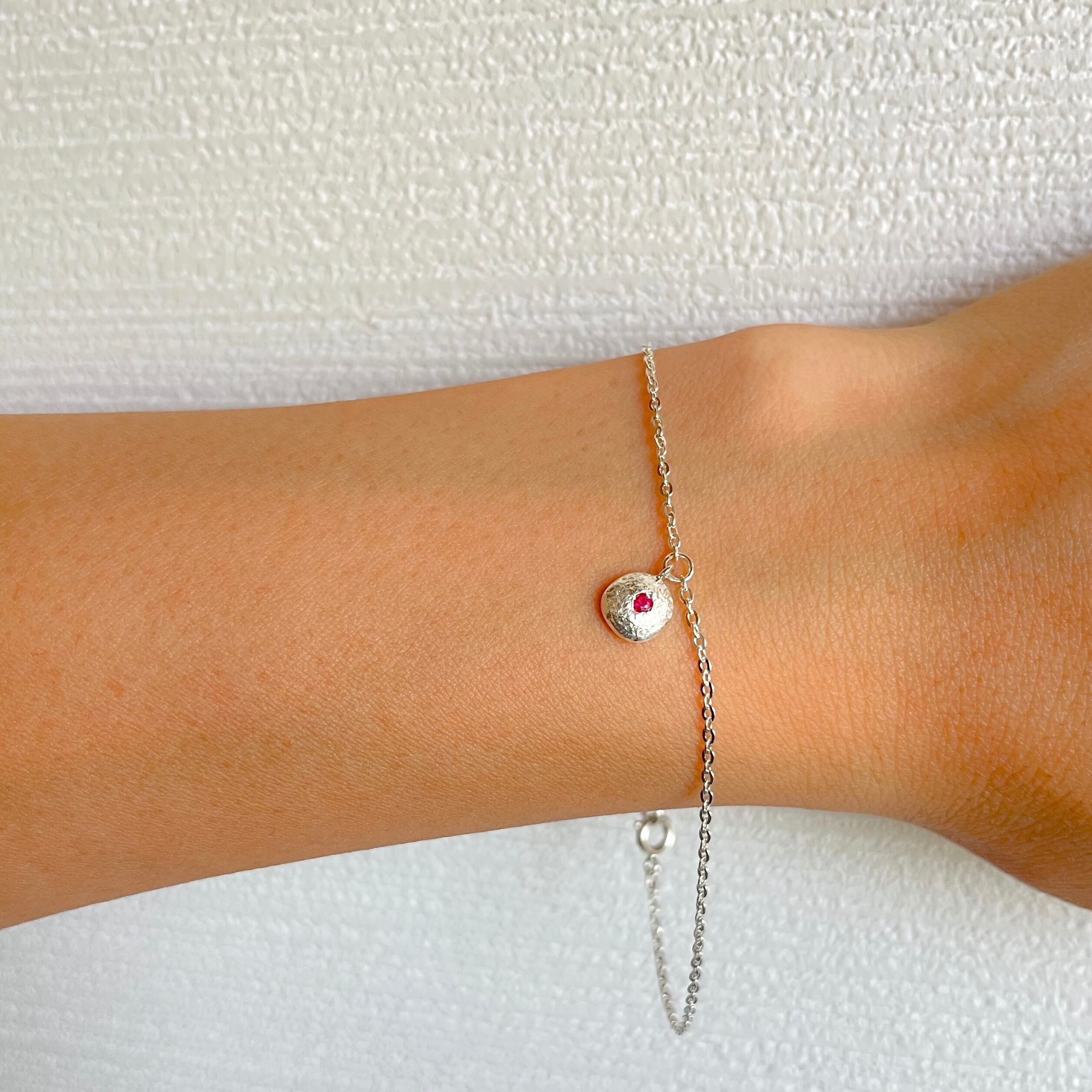 ルビーのシルバーブレスレットは、上品で美しい輝きを放つジュエリーです。インパクトのあるルビーと、シルバーの輝きが調和したデザインは、華やかな装いを演出してくれます。手首を彩る一本は、身につけるだけで女性らしさを引き立ててくれること間違いなしです。
