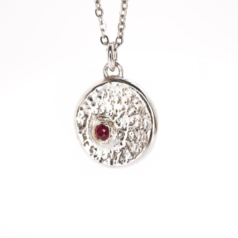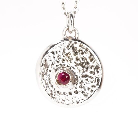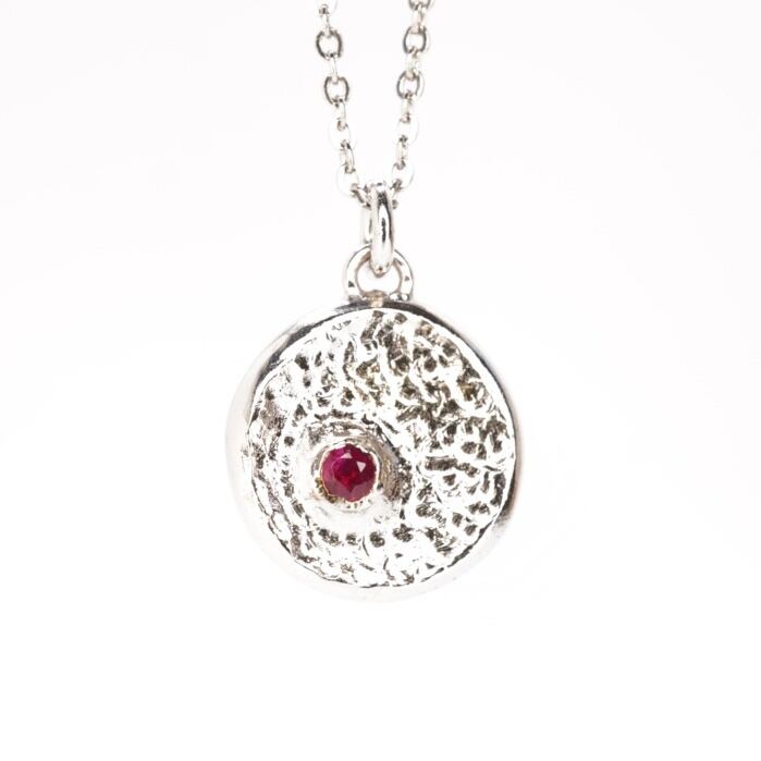 シンプルで上品なルビーの純銀ネックレス。派手すぎず、でも存在感抜群のルビーが、華やかなアクセントに。コーディネートのポイントになりつつも、どんなスタイルにもしっくりなじむデザインです。
