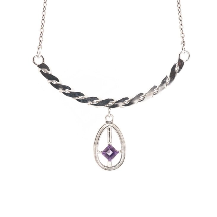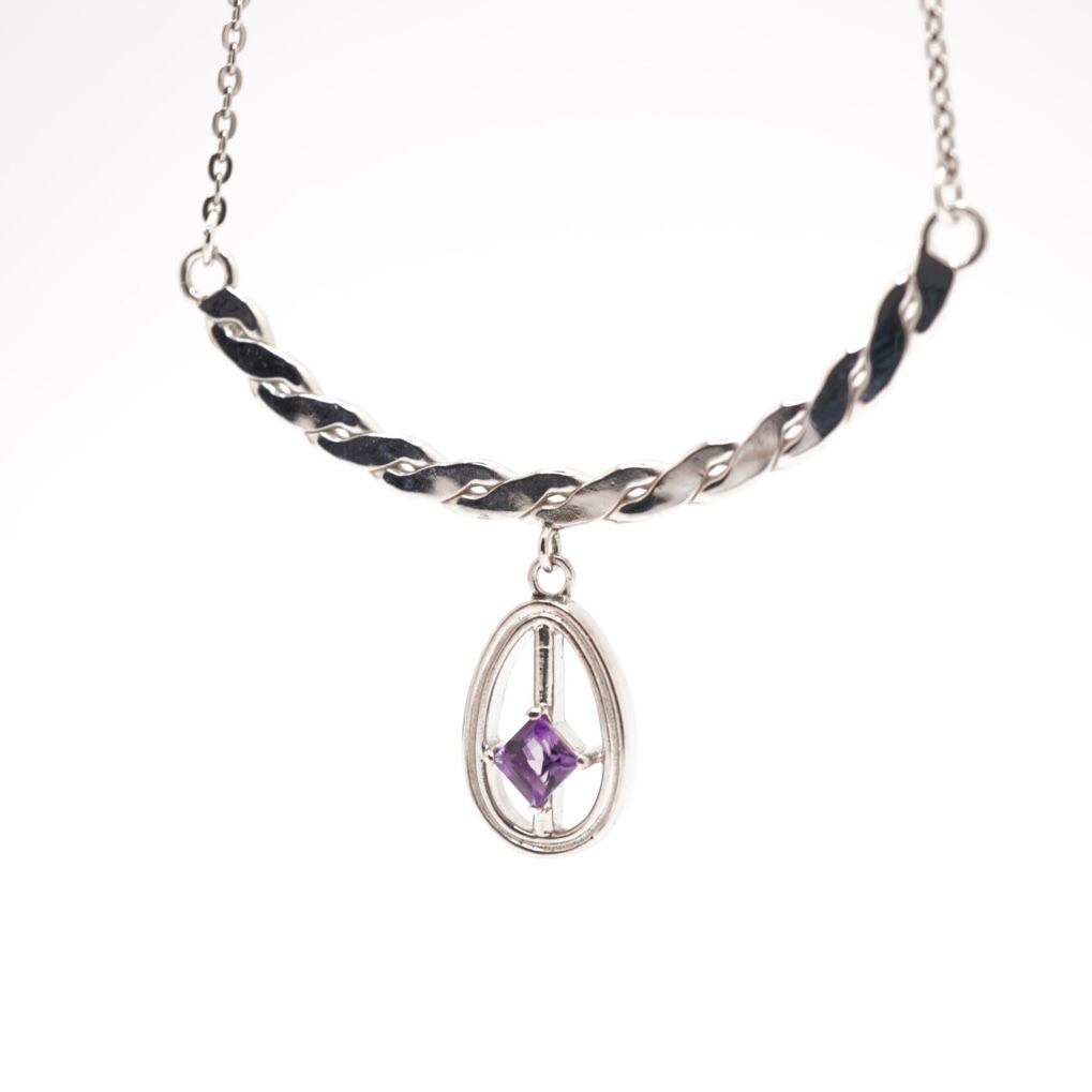 アメジストとカーブプレートのネックレス