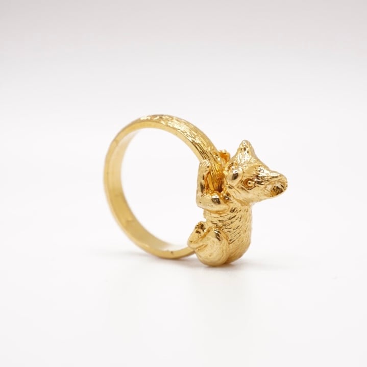 コアラリングは、愛らしいコアラが指を優しく包んでくれるリングです。一点もののデザインなので、あなただけの特別なアクセサリーとしてお楽しみいただけます。コアラの愛らしい表情や愛情を感じさせる姿は、身に着けるだけで癒しを与えてくれること間違いありません。