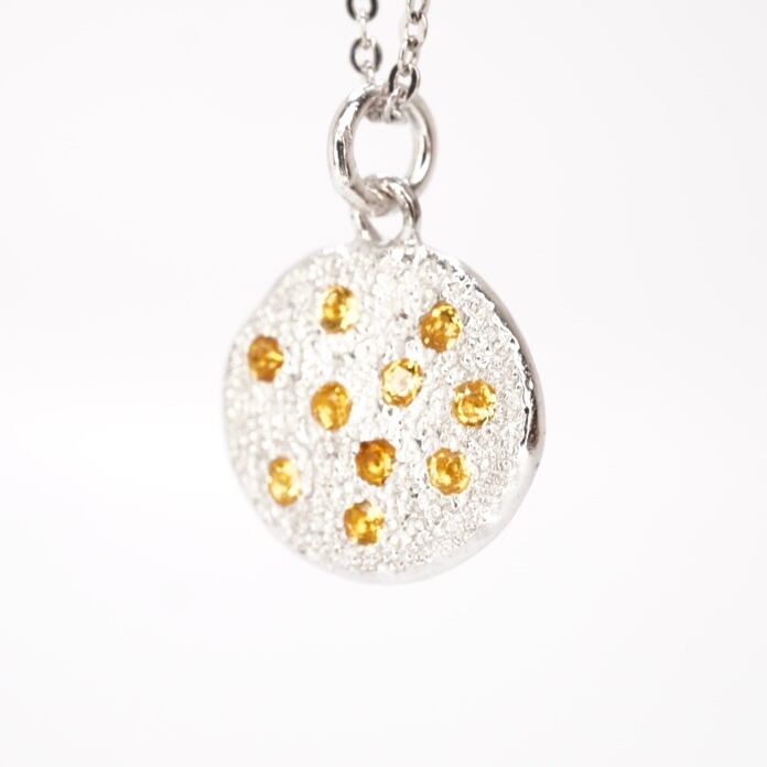 シトリンの純銀ネックレスは、小粒でありながら存在感のあるアイテムです。女性らしさを引き立てながらもシンプルなデザインなので、どんなファッションスタイルにも合わせやすく、幅広いシーンで活躍します。万能でお手持ちのアクセサリーとも相性抜群です。