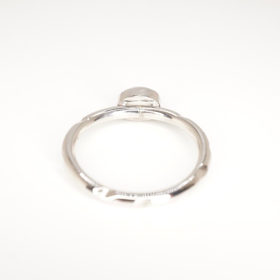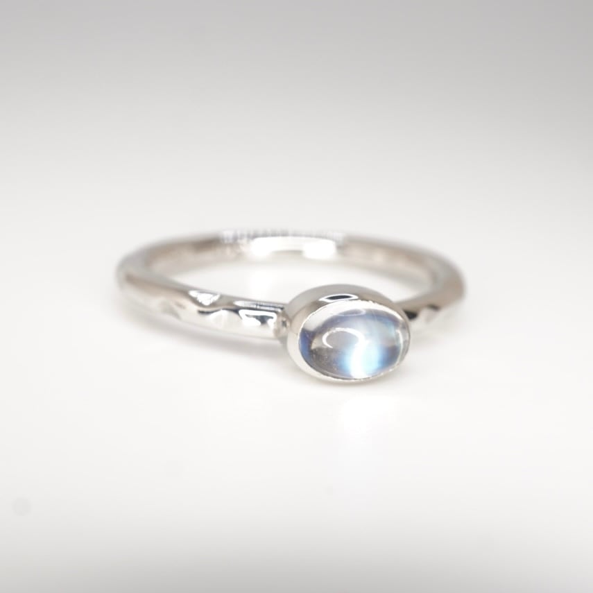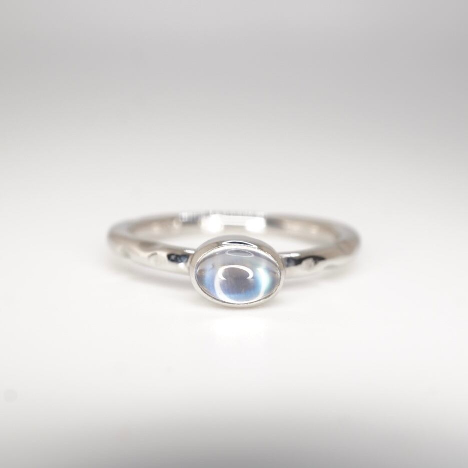 リング部分の凸凹加工が施されており、シンプルながらもオシャレで個性的なアクセントをプラスしています。スーパームーンストーンは、古代から神秘的な力を持つとされ、幸福をもたらすと言われています。このリングを身に着けることで、幸せな日々が訪れるかもしれません。