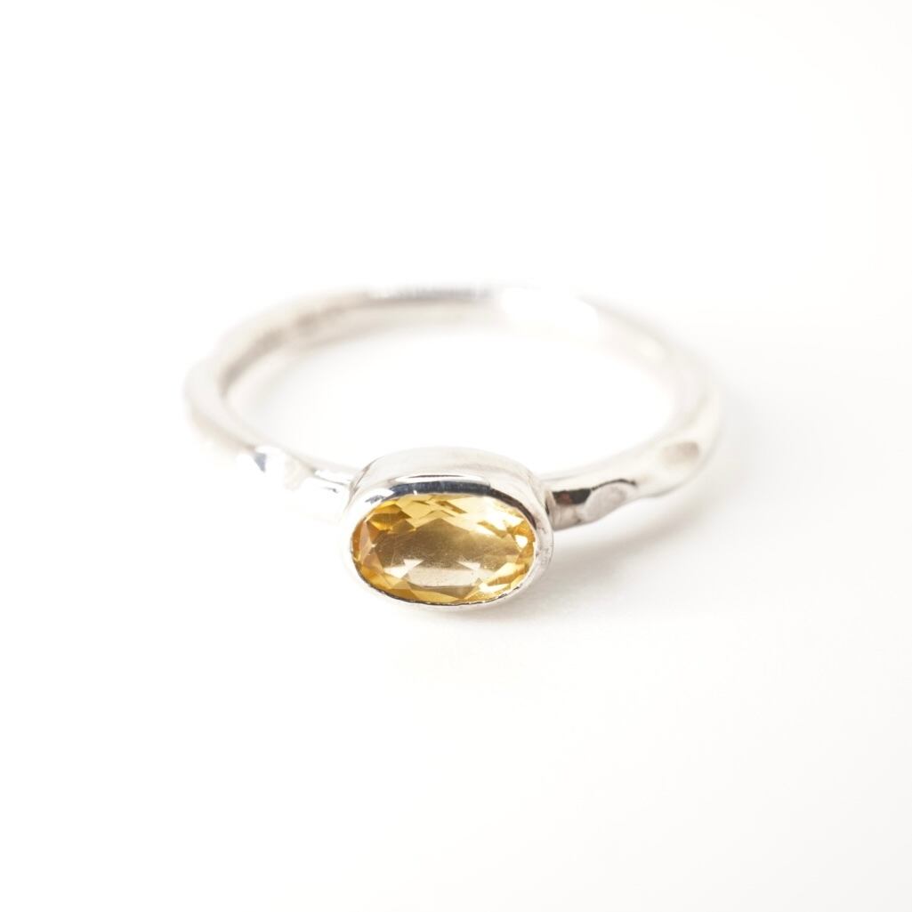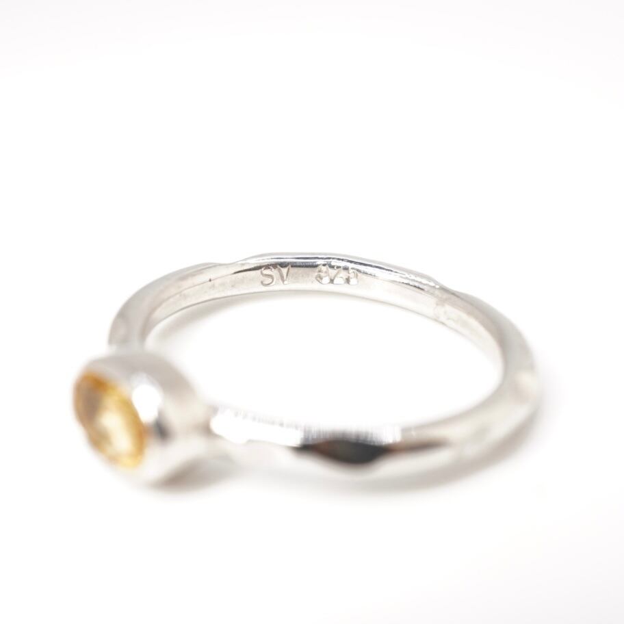 シトリントパーズの美しさを身に纏うシルバーリング。煌めくオレンジイエローの宝石が、指先に華やかさを添えます。リングの表面に施された凸凹加工が、シンプルながらも個性的なデザインを演出。シーンを選ばず、あらゆるスタイルにマッチするアクセサリーです。