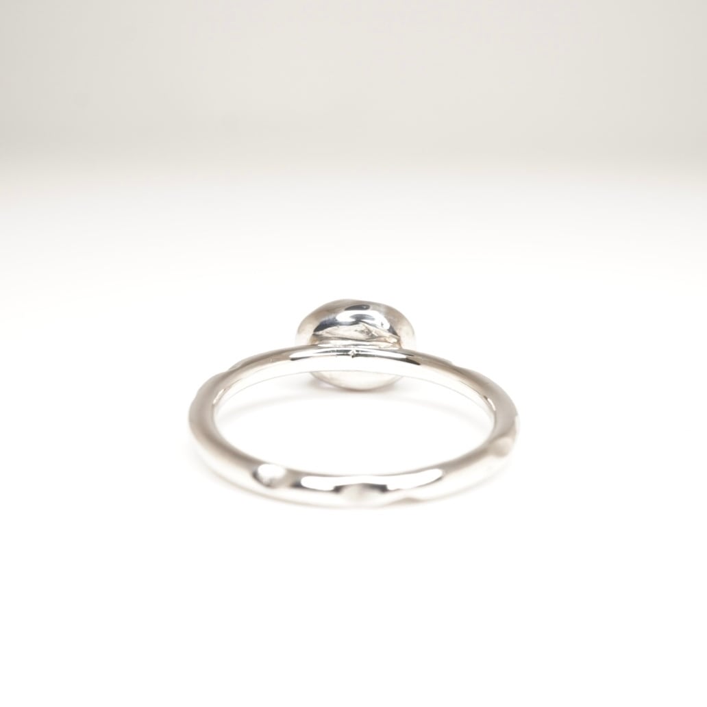 このシルバーリングは、一つひとつ手作業で丁寧に作られています。リング部分の凸凹加工がお洒落で、存在感のあるデザインは装いを引き立ててくれます。日常使いから特別な日のアクセサリーにもぴったりなアイテムです。