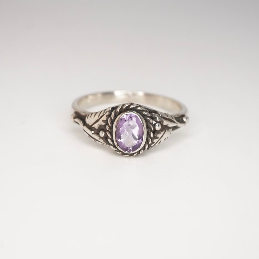 アメジストとリーフのリング、上品な輝きがあなたを包みます。アメジストのパープルが石の美しさを引き立て、リーフモチーフが女性らしい華やかさを演出します。シンプルでありながらも洗練されたデザインは、日常使いから特別な日まで幅広く活躍します。高品質な素材と職人の技が融合したリングは、あなたの指元を飾り、周囲を魅了すること間違いなしです。
