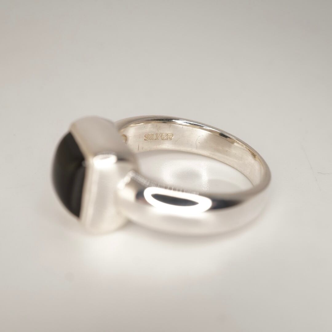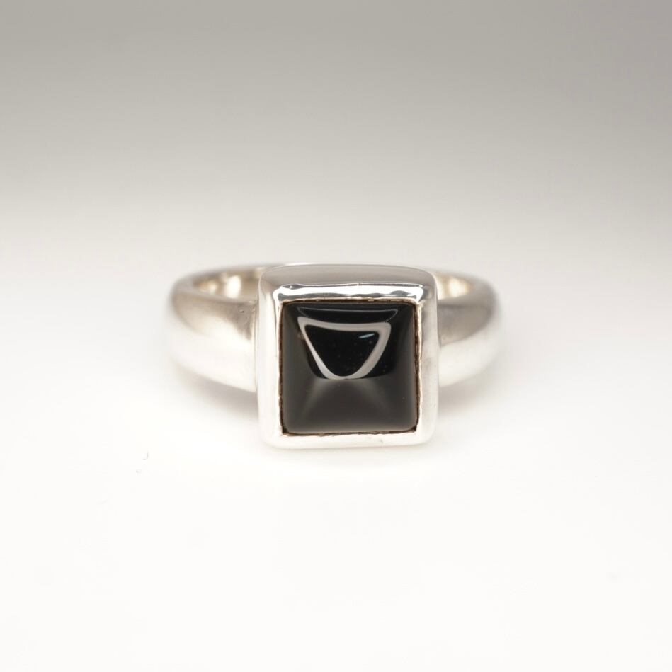 オニキスのスクエアリングは、シンプルでありながら存在感のあるアイテムです。洗練されたデザインとモダンなスクエア形状が、どんなコーディネートにもマッチし、装いを引き締めてくれます。オニキスは、悪いエネルギーを取り除き、ストレスを和らげる効果があると言われています。身に着けることで、日常の疲れやプレッシャーからリフレッシュされることでしょう。
