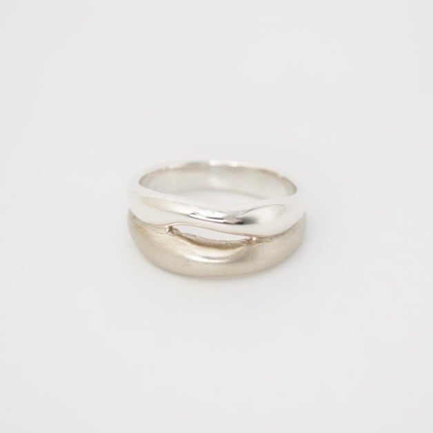 両方の質感を楽しめる、質感の違うリングが登場!つや消しとつや有りのリングを組み合わせたデザインは、シンプルながらも存在感があり、どんなスタイルにもマッチします。