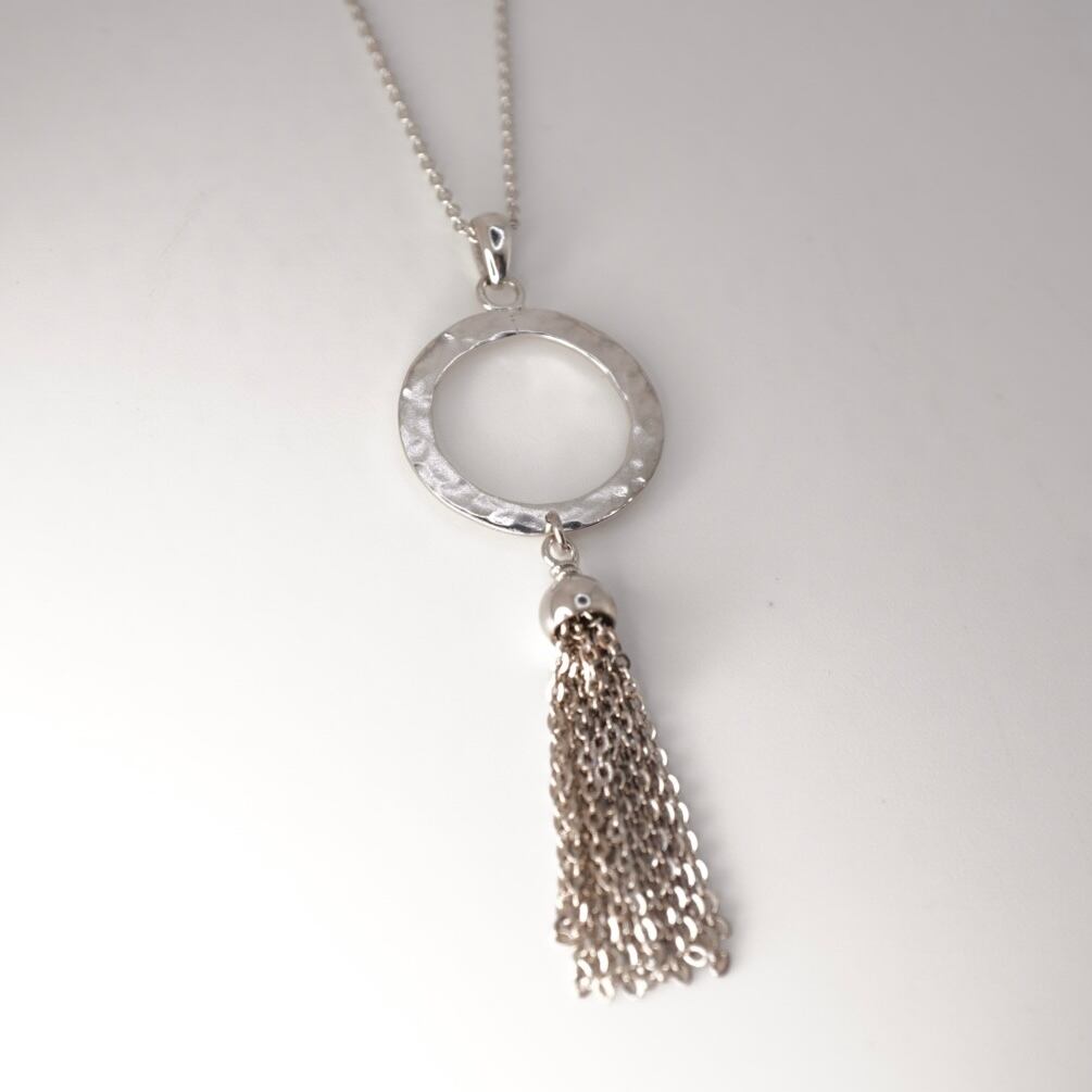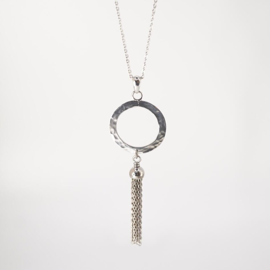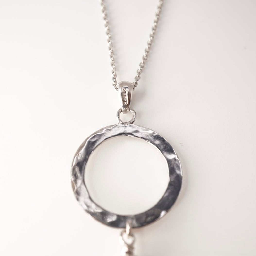 たたき加工が施されたリングとチェーンが絶妙に組み合わさったネックレス。シンプルながらも存在感のあるデザインは、どんなコーディネートにもマッチします。自分へのご褒美や大切な人への贈り物にもおすすめです。着けるだけで、おしゃれ度がぐっとアップすること間違いなし!何重にも重ね付けしてもおしゃれなので、お好みのスタイルで楽しんでみてください。